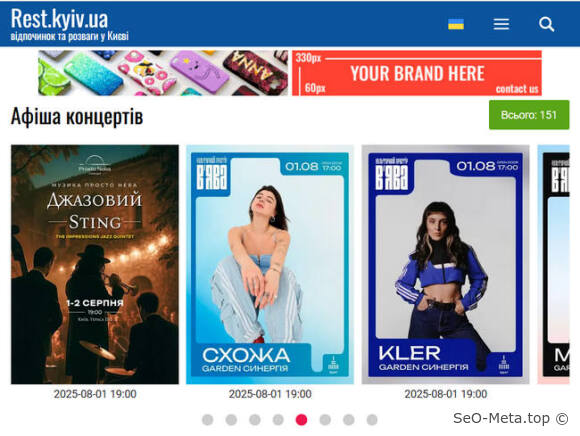 Сайт rest.kyiv.ua – це провідна платформа, присвячена культурному життю Києва, яка пропонує актуальну афішу театральних вистав, концертів та інших розважальних подій у столиці України. Ресурс є незамінним помічником для киян і гостей міста, які прагнуть бути в курсі найцікавіших культурних заходів, від класичних опер до сучасних рок-концертів. Завдяки зручній структурі та детальній інформації, сайт допомагає легко планувати дозвілля, купувати квитки та відкривати нові культурні горизонти.